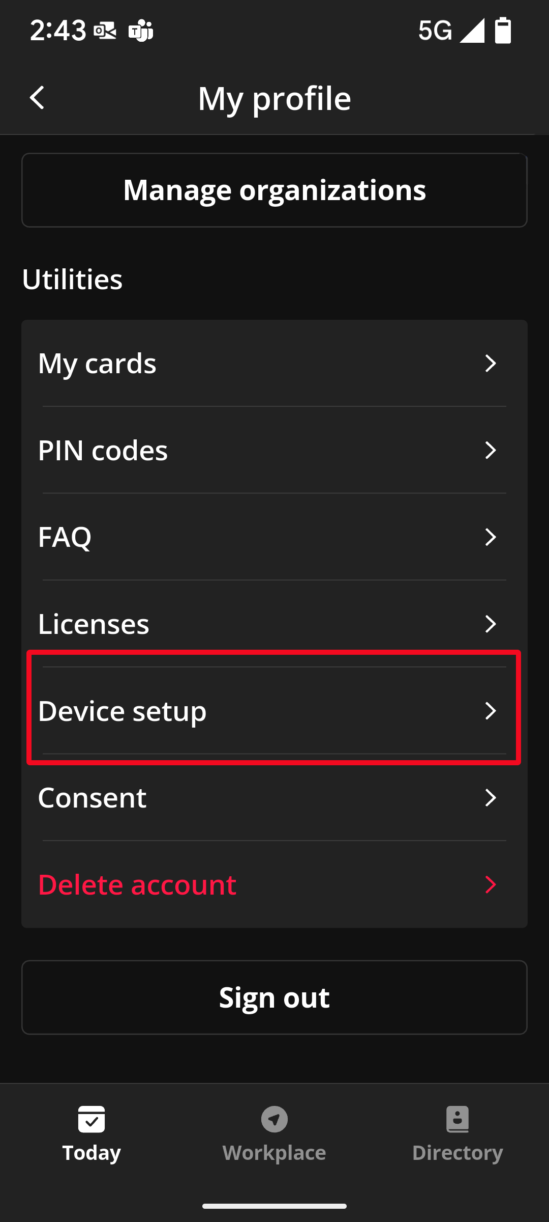 4. On your profile screen, scroll down to the Utilities section, and tap Device setup tab, and select "Naso Room Manager".